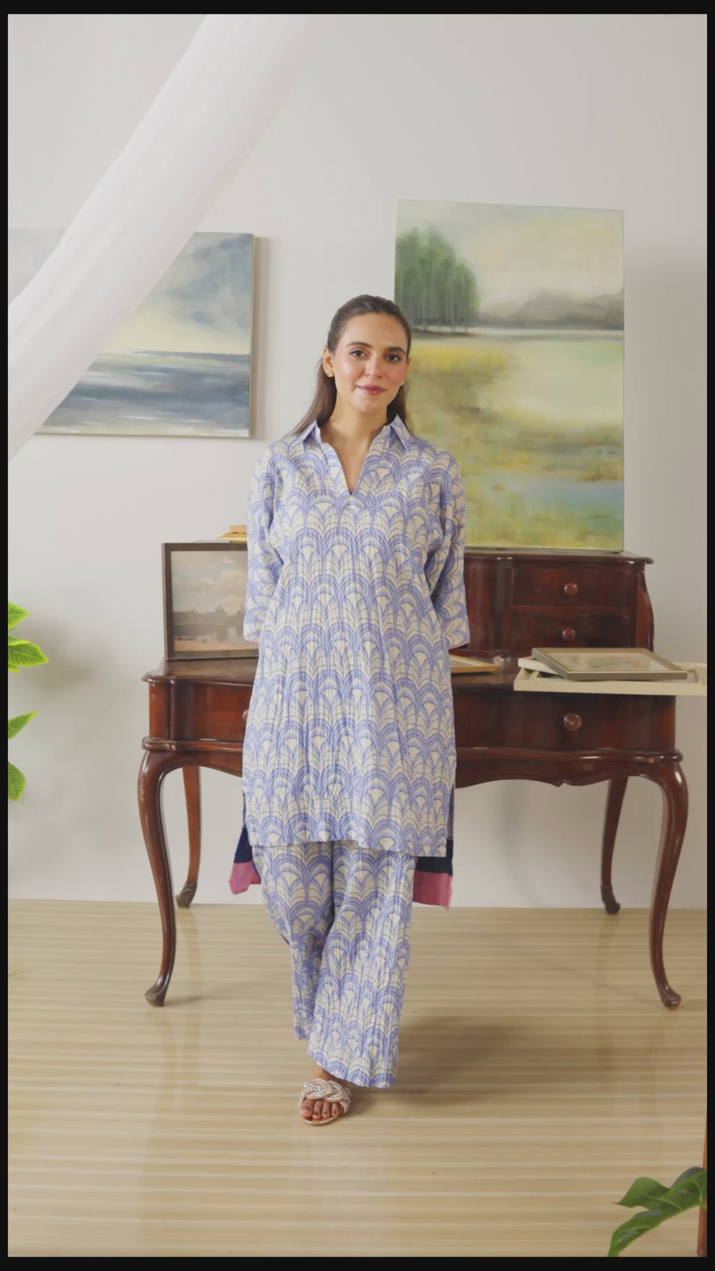 Elevate everyday dressing with this light-blue long shirt and trouser set, designed to strike the perfect balance between relaxed comfort and polished style. The flowing long shirt drapes gracefully for a flattering silhouette, while the straight trousers create a clean, coordinated finish that feels effortless from morning to night.